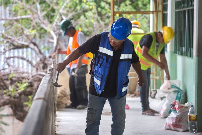 Desde ayer, trabajadores de la construcción comenzaron a reparar los barandales que se caían a pedazos, así como trabes de la infraescturctura para evitar que sea un riesgo para los alumnos. La primera etapa de rehabilitación se estima esté lista hasta junio, es decir, terminarán las clases achocados en los pocos salones en buenas condiciones. Una semana irán unos grupos y la siguiente los que faltan.