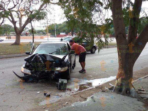Por lo que se estampó en un árbol de flamboyán. Por el impacto, la conductora del vehículo y su tripulante, se quejaban de dolor en el cuerpo, el copiloto bajó por su propio pie mientras la dama se quedó en espera de los paramédicos.