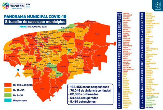Mérida acumula hasta este 31 de agosto, 38 mil 483 casos positivos.