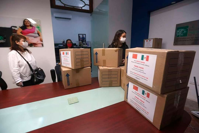 El Ayuntamiento de Mérida recibe donativo de 20 mil cubrebocas de manos de la Asociación China “Península de Yucatán”