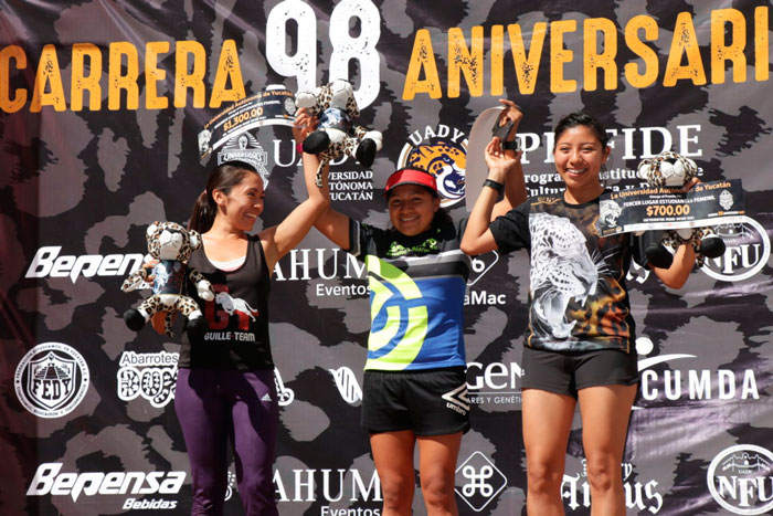 En la rama libre femenil, las ganadoras fueron Jaqueline Caballero con 43’49”, y detrás cruzaron la meta Lizzeth Martín (47’51”) y Alondra Canché (50’28”).