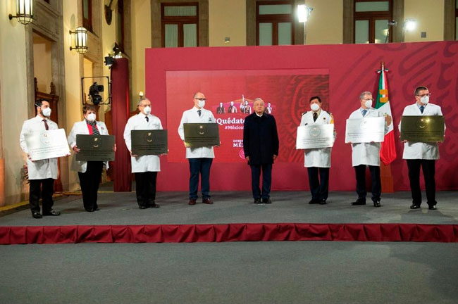 Por su conducta ejemplar frente a la pandemia, el Gobierno de México reconoció este día con la Condecoración Miguel Hidalgo en Grado Placa al personal de salud que labora en 980 hospitales COVID de todo el país.