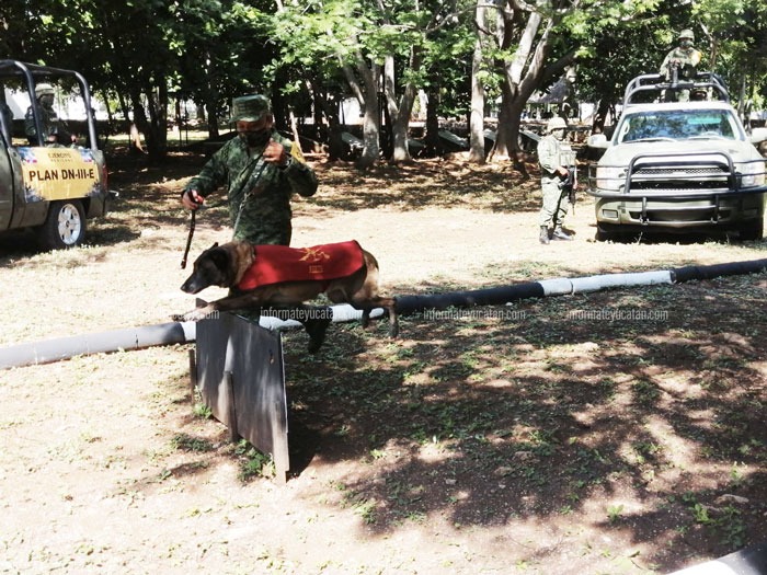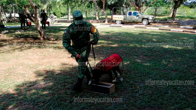 Mérida, Yucatán a 30 de octubre de 2021 (InformaTe Yucatán).- Nerita, Pirex y Noxa, son tres de los cinco binomios caninos que forman parte del 11vo Batallón de Infantería, entrenados para la búsqueda de enervantes y explosivos durante los operativos.