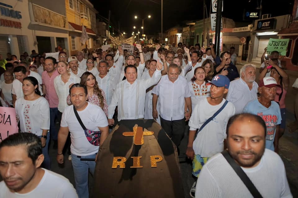 “Esta no es una marcha más, este 23 de agosto va a quedar grabado como la fecha en la que el pueblo de Progreso salió a las calles a exigir respeto a la voluntad del pueblo, ante este despojo que se está realizando en el Tribunal de Xalapa, al verdadero Presidente Municipal de Progreso que es el Dr. Raúl Alvarado”, manifestó frente al Palacio Municipal.
