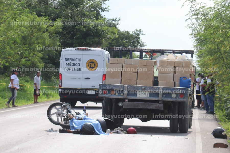 Mérida, Yucatán a 1 de octubre de 2025.- El mes de octubre abre con un motociclista fallecido al estrellarse contra un camión de carga estacionado en una calle lateral del periférico sur.