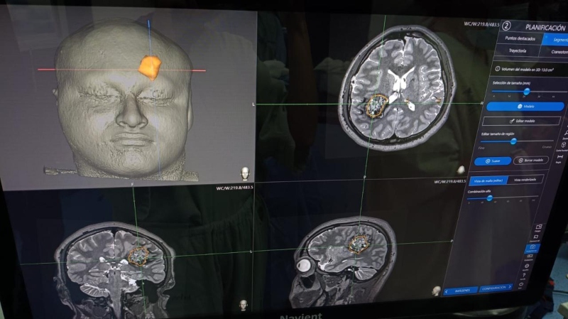 Para este procedimiento se utilizó la técnica “despierto-dormido-despierto”, dirigida por el equipo de anestesiología. Inicialmente se aplicó anestesia regional para permitir la apertura del cráneo sin dolor; posteriormente, mediante tecnología de navegación tipo “GPS cerebral”, los especialistas identificaron el tumor con precisión y, mientras Francisco permanecía despierto, monitorearon su lenguaje y movilidad para evitar daños en áreas funcionales.