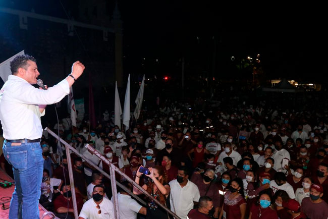 Kanasín, Yucatán, 2 de junio de 2021,- Llegó la hora de que la esperanza se convierta en Bienestar para Kanasín, afirmó el candidato de Morena a la presidencia municipal, Carlos Moreno Magaña al cerrar su campaña en el corazón de la ciudad.