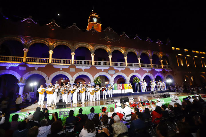 Al llegar a la tarima instalada en los bajos del Palacio Municipal, los trovadores interpretaron los temas “Acuarela”, “Noche envidiosa”, “Quisiera”, “Peregrina”, “Manos de armiño”, “A Yucatán”, “Ella” y “En tus ojos”.