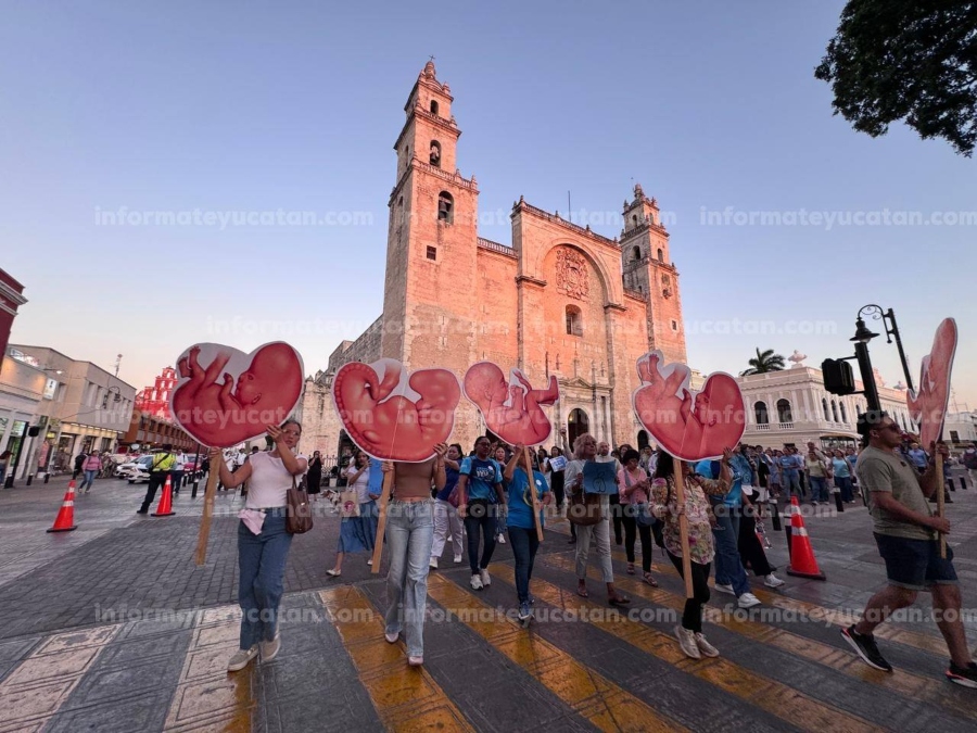 Mérida, Yucatán.— Bajo el lema “Rezamos por ti y tu bebé”, agrupaciones católicas, organizaciones civiles y jóvenes embarazadas participaron en una caminata a favor de la vida en los alrededores de la Plaza Grande.