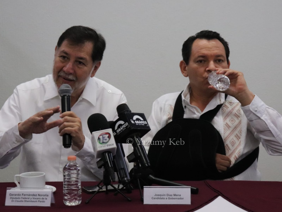 Por cierto, aunque Fernández Noroña intentó decir que tras 100 años del gobierno de Felipe Carrillo Puerto, Yucatán volverá a tener un gobierno de izquierda, se frenó a su comentarios, toda vez que el candidato de la 4T en Yucatán, tiene sus orígenes partidistas en Acción Nacional, la derecha.
