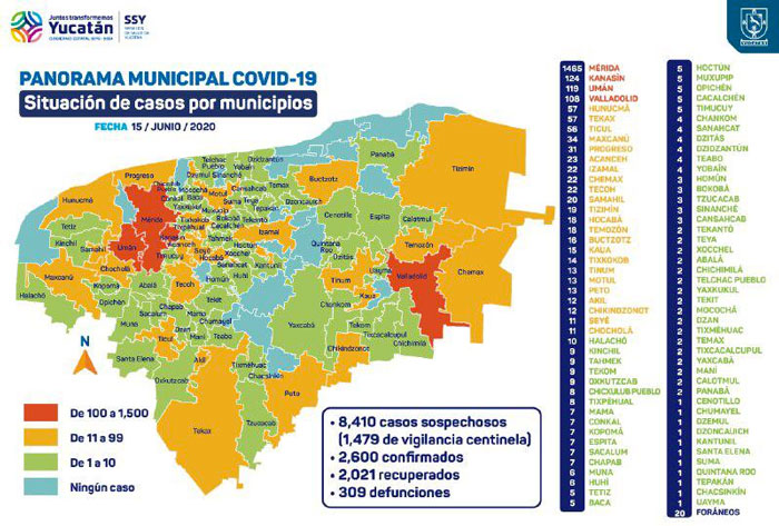 Al arrancar la semana 14 de la contingencia sanitaria, la SSY registra 8,410 casos sospechos, de los cuales se han confirmado 2,600 positivos, 2,021 recuperados, 94 estables y 176 hospitalizados y en aislamiento total.