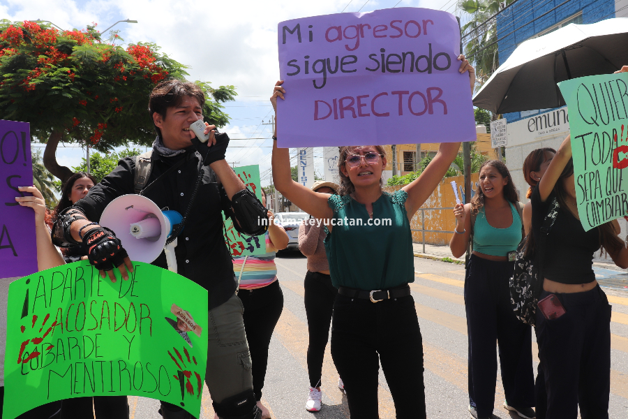 Mérida, Yucatán a 11 de agosto de 2025 (InformaTe Yucatán).- Estudiantes de la CTM encabezados por Fernanda “N”, se manifestaron a las afueras del Centro de Estudios Superiores CTM Justo Sierra O’Reilly, para pedir la destitución del Director, Luis Alberto Echeverría Navarro, por presuntos delitos sexuales.