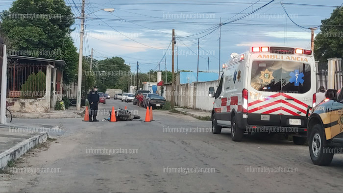 Cinthia Caamal Kú hija de la afectada reclamó a los policías que rápido levantaron la moto si que llegara la aseguradora.