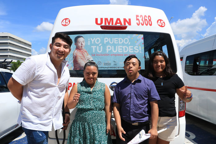 Por su parte, la Alianza de Camioneros de Yucatán y Unión de Camioneros, también apoyaron con 30 unidades de transporte urbano que tendrán en la parte posterior publicidad de la campaña de inclusión, donada por Grupo Nicxa.