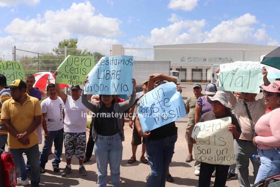 Mérida, Yucatán a 25 de agosto de 2025 (InformaTe Yucatán).- Vecinos de varios fraccionamientos, así como de las comisarías de San Diego Tixcacal y Oxcúm, se manifestaron esta mañana bloqueando el acceso al Centro de Distribución de Grupo Industrial Maseca (GRUMA), debido a que constantemente los trailers que llegan con producto, derriban postes o cables de CFE y Telmex, afectando a miles de familias.