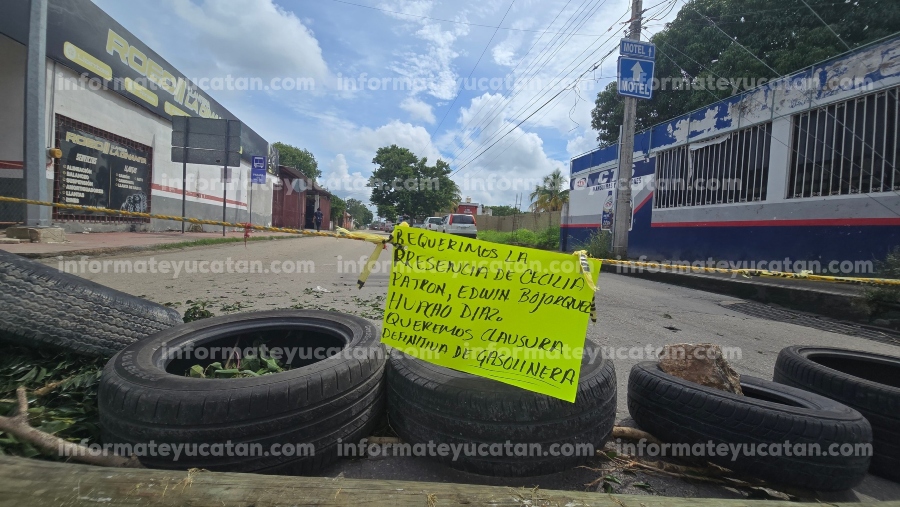 Desde temprana hora bloquearon la calle 35 que conecta el Periférico de Mérida con varias colonias y fraccionamientos de Kanasín, municipio donde se construyó la gasolinera de FullGas.