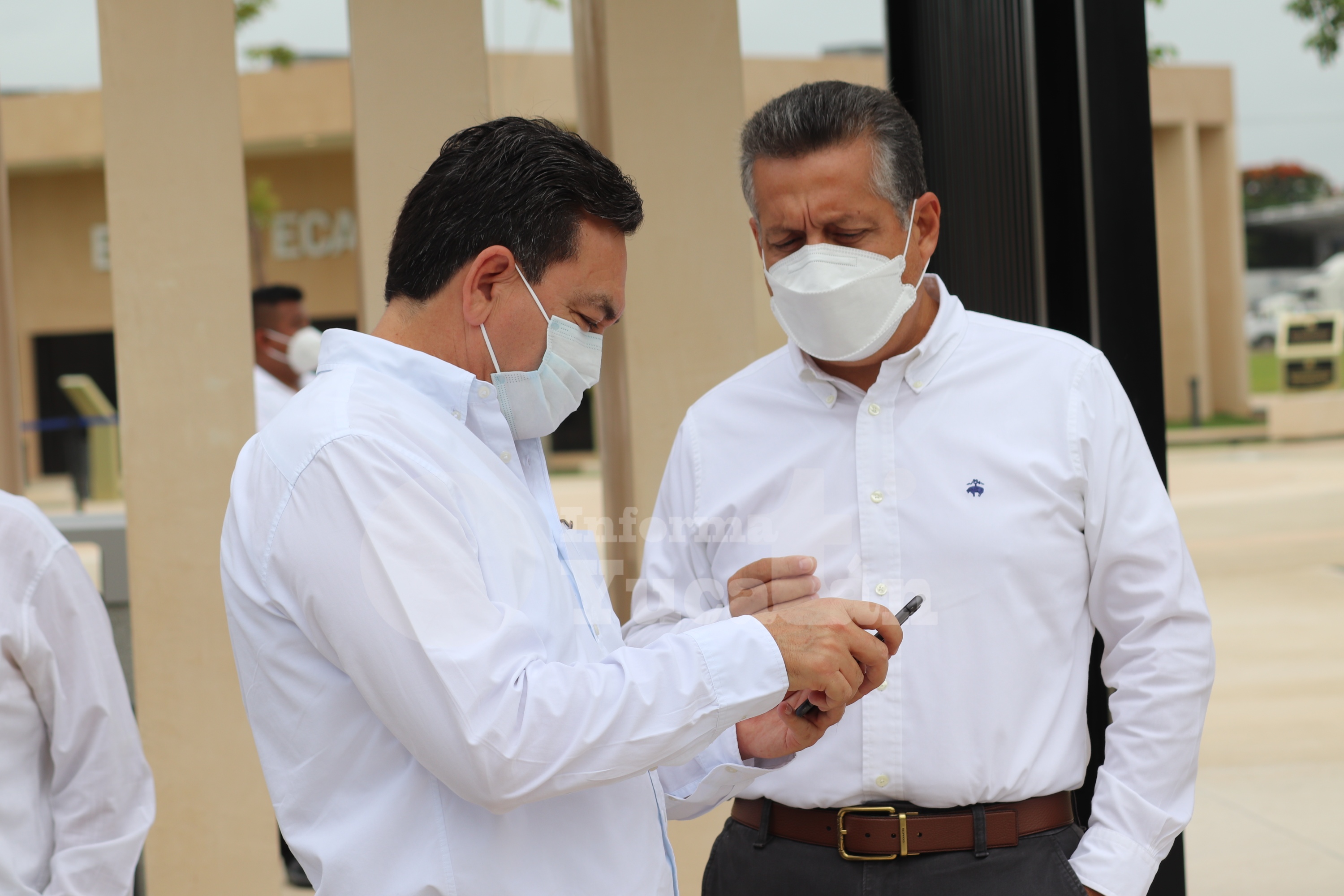 Previo al corte de listón y recorrido por las instalaciones, al vallisoletano se le vio muy platicador con el alcalde interino, Alejandro Ruz Castro, con quién intercambio número telefónico.