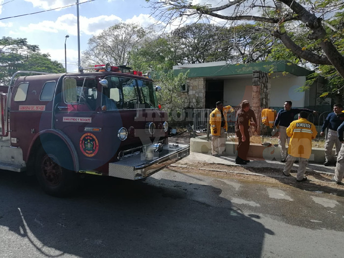 Mérida, Yucatán a 10 de febrero de 2020.- Un fuerte ruido, seguido de una gran cantidad de humo alertó a los vecinos de la comisaría de Caucel quienes llamaron a los bomberos, enseguida llegaron a sofocar el incendio registrado en las instalaciones del Instituto Mexicano del Seguro Social en la Unidad Médica Urbana #12, específicamente en la calle 6 con 23 de dicha comisaría.