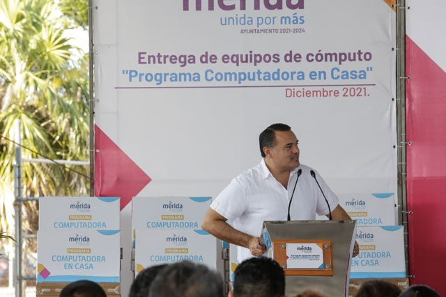 El Ayuntamiento de Mérida recibió una solicitud de más de dos mil computadoras. El alcalde Renán Barrera ha entregado las primeras 474 y aún quedan pendientes 1,580 solicitudes validadas.