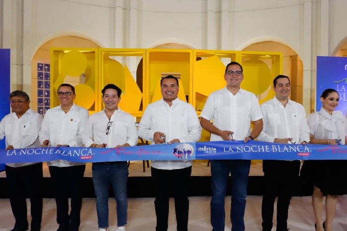 Desde temprano, decenas de personas realizaban filas a las afueras del Centro Cultural Olimpo donde el alcalde Renán Barrera Concha inauguró la obra “Lo Que Dejamos Pasar” del artista William Gaber o esperaban el performance programado en la Plaza Grande y el desfile de modas a las puertas de la Catedral donde al mismo tiempo se proyectaba un videomapping.