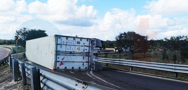 Los hechos ocurrieron a la altura del km.148 de la vía Mérida-Campeche. La caja del trailer bloqueó la carretera que tuvo que ser cerrada por policías estatales y federales para que se realizara el deslinde de responsabilidades.
