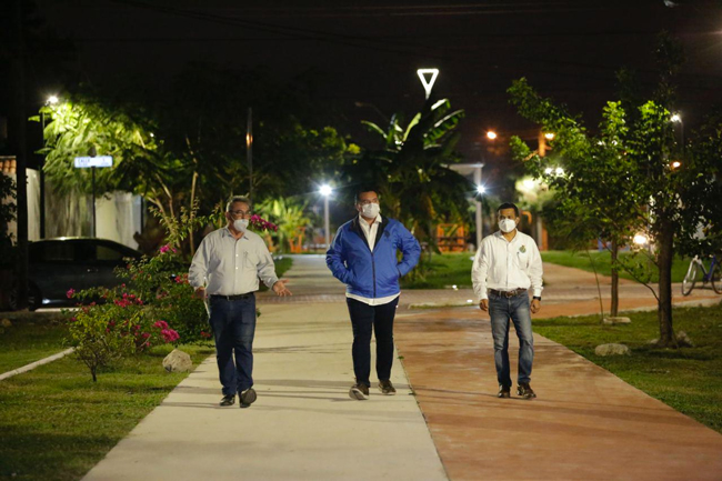 Mérida, 17 de diciembre de 2020. Como parte de los trabajos incluidos dentro del proyecto “Ya´axtal, el Gran Pulmón de Mérida”, esta tarde el alcalde Renán Barrera Concha entregó los andadores e iluminación de este espacio público para el pleno disfrute de la ciudadanía y para contribuir a mejorar la seguridad y calidad de vida de más de 120 mil personas que habitan en el poniente meridano.